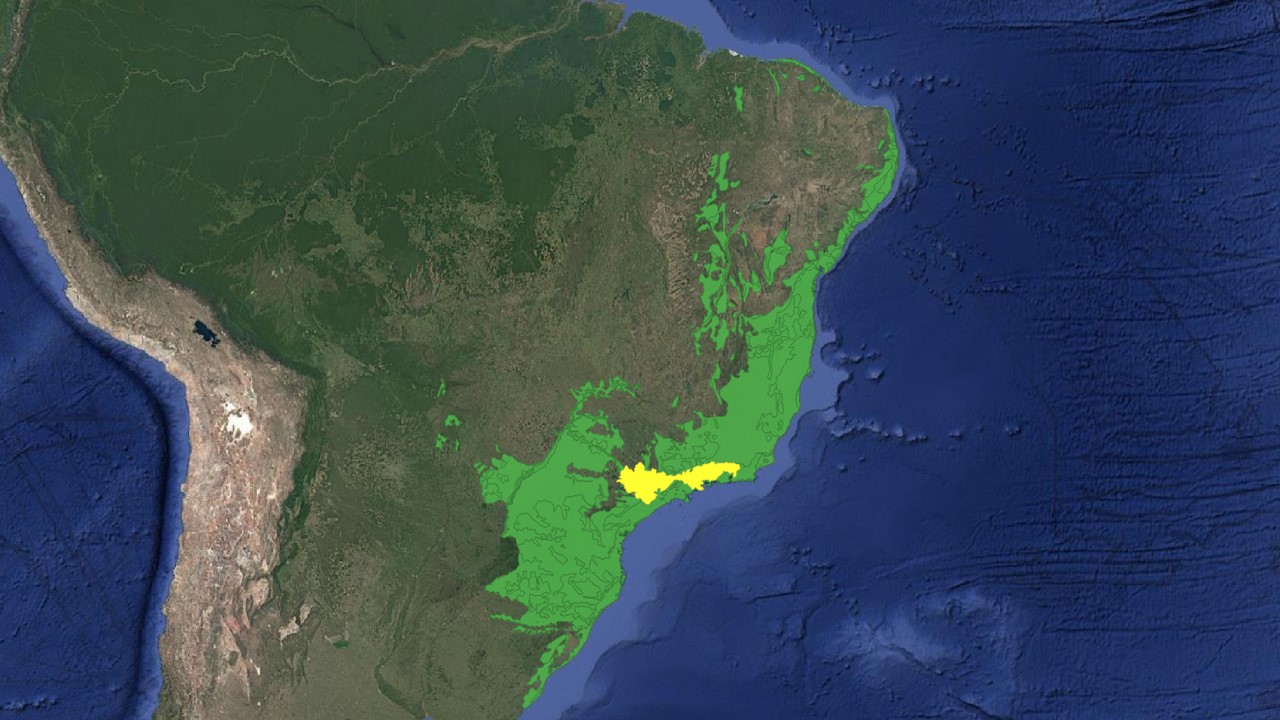 In yellow, the territory of the strategy; in green, the original area of the Atlantic Forest biome in Brazil.