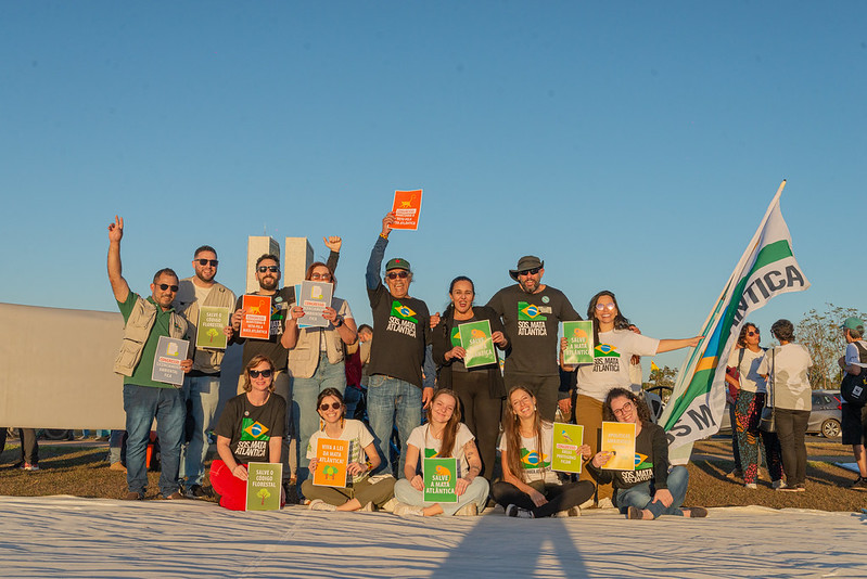Belô (ao centro) com a equipe da SOS Mata Atlântica em ato cívico em Brasília em 2023. Foto: Fernando Castro.